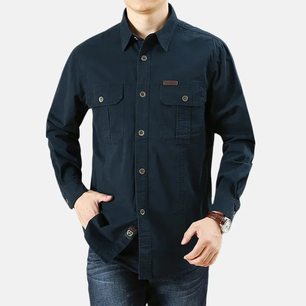Mejora tu guardarropa con esta camisa de manga larga que combina un refinado cuello punto y un clásico cierre de botones en la parte delantera. Diseñada para la versatilidad, se adapta sin esfuerzo de entornos casuales a semi-formales.