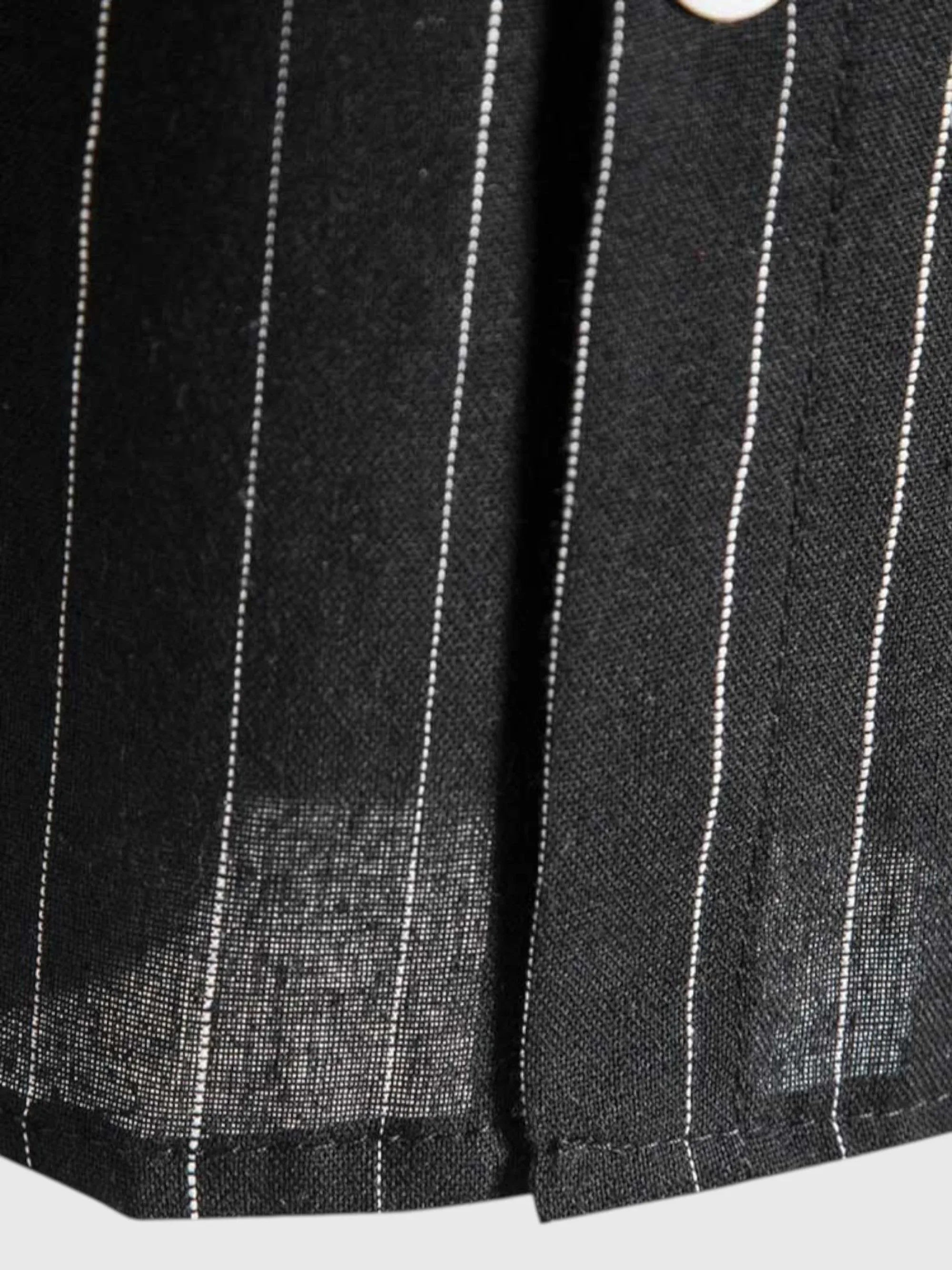 Experimenta una refinación sin esfuerzo en esta camisa ligera y a rayas con botones, cuidadosamente elaborada para el hombre moderno que valora tanto la comodidad como el estilo. Esta prenda encarna la esencia de la elegancia clásica y es una adición atemporal a cualquier guardarropa refinado.