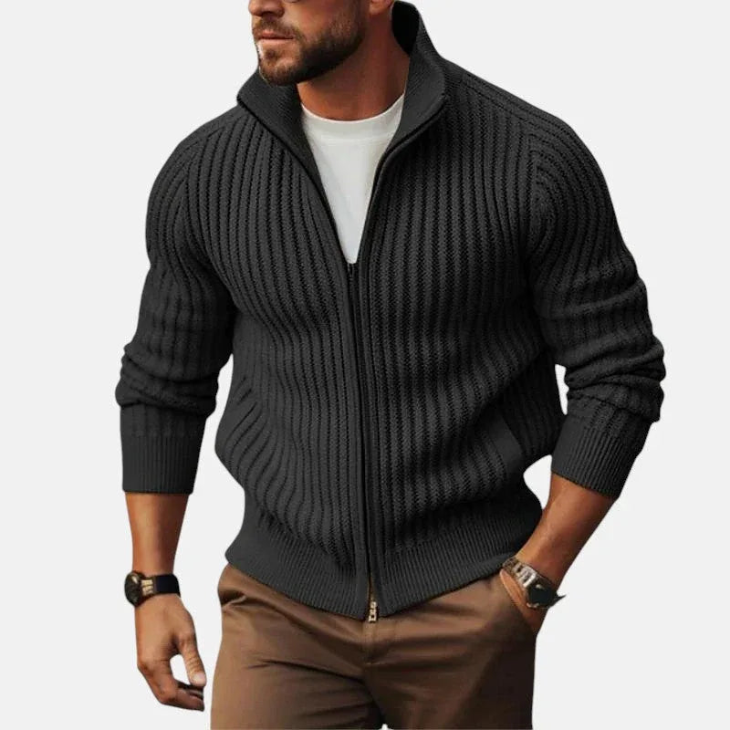 Javier | Cárdigan con Cremallera y Cuello Alto de Canalé