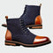 Muške kožne Oxford čizme spajaju klasičnu eleganciju s modernim detaljima. Izrađene od vrhunske kože, u elegantnom spoju navy plave boje i smeđih kožnih detalja, odišu trajnom elegancijom. Sjajni smeđi završeci na prstima i peti daju premium karakter, dok čvrsta i izdržljiva potplat osigurava stabilan korak i pouzdanu svakodnevnu upotrebu.