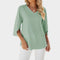 Dodajte ovu plavu bluzu s volanima u svoj ormar i uživajte u univerzalnom komadu koji donosi stil i udobnost u svaki dan.