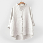 Lagana ženska bluza s volanima na ovratniku i gumbima uzduž prednje strane savršeno kombinira udobnost i stil za svaku priliku. Ovo je lagana, elegantna bluza koja pršti ženstvenošću i sofisticiranošću, idealna za dnevne i večernje kombinacije.