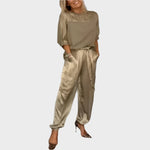 Saten Set S Opuštenom Bluzom I Cargo Hlačama Za Stil