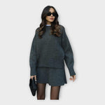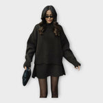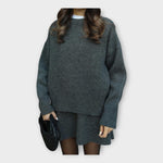 Ovaj sofisticirani set pletene bluze i suknje s modernim krojem nudi savršen spoj udobnosti i stila, idealan izbor za svaku prigodu. Lagani, opušteni kroj i profinjen dizajn čine ga pogodnim za casual izlaske kao i za elegantnije trenutke.