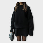 Dodajte bezvremensku eleganciju svom ormaru uz ovaj set pletene bluze i suknje — savršen spoj praktičnosti i stila za sve sezone.