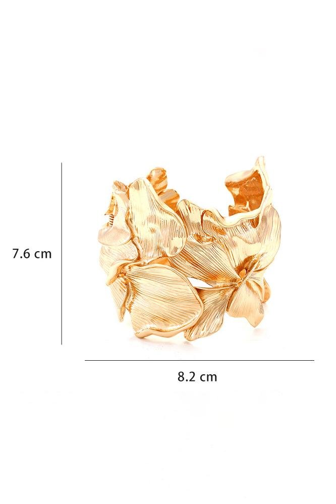 Predstavljamo vam narukvicu Metallic Textured Flowers Bracelet, spoj sofisticiranog izgleda i pažljivo izrađenih detalja. Ovaj komad nosi teksturirane cvjetne motive na elegantnom metalnom završnom sloju, koji donosi diskretan, ali upečatljiv sjaj svakom izgledu.