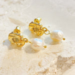 Mina Naušnice S Blok Biserom Zlato Premazane 18K Na Bazi Od Mesinga Klinasti Zatvarač