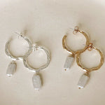 Dodajte dozu sofisticiranosti svom svakodnevnom stilu uz Beaten Metal Pearl Drop Hoops - Gold/Cream. Ove naušnice spajaju učinkovitu kombinaciju teksturirane beatene metalne petlje i dojmljive kapljice slatkovodne bisere, stvarajući elegantan i bezvremenski komad koji nadopunjuje svaki outfit.