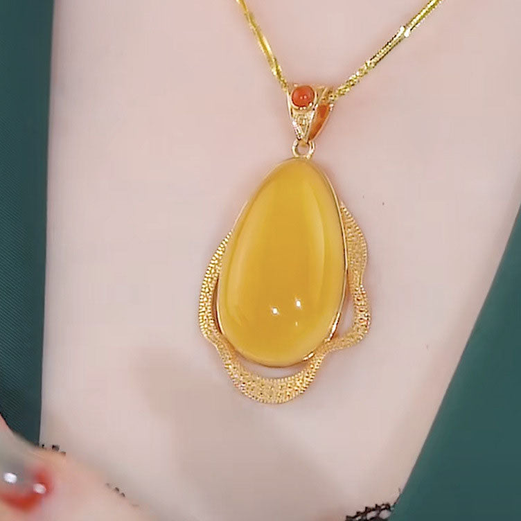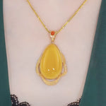 Retro Ogrlica Od Žutog Ledenog Agata Sa Privjeskom Za Elegantan Retro Stil Sa Dugim Lancem