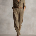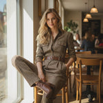 Ovaj model u utilitarnom stilu spaja eleganciju kroja po mjeri s udobnošću modernog, strukturiranog dizajna. Podesiv remen naglašava struk, dok praktični džepovi i čvrsta tkanina pružaju funkcionalnost i profinjen izgled. Savršen izbor za elegantan, svestran outfit koji se lako prilagođava poslovnim i ležernim prilikama.