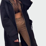 Odaberite ovaj dugi kaput s kapuljačom i uživajte u toplini, stilu i praktičnosti u svom svakodnevnom izgledu. Savršeno se uklapa uz čizme ili gležnjače te postaje nezaobilazan komad za jesensko-zimsku sezonu.