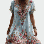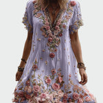 Haljina Vintage Stilu S Kratkim Rukavima I Cvjetnim Vezom