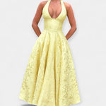 Korset na području dekoltea grli tijelo i ističe siluetu, dok otvorena leđa s podesivim vezicama osiguravaju savršenu prilagodbu i udobnost. Prozračna midi suknja daje joj laganu pokretljivost, a sjajan floralan uzorak privlači poglede bez pretjerivanja.
