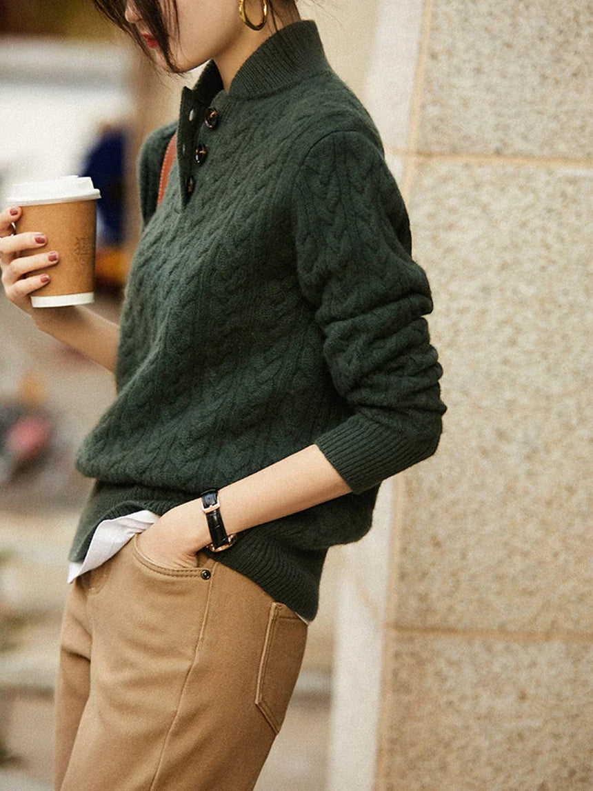 Arden Kašmir Džemper Sa Gumbima I Stojeći Ovratnik Moderan