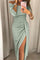 Ovaj dugi model u nijansi svjetlucavog lila savršen je spoj profinjenosti i senzualnosti. Lagana, sjajna tkanina nježno prati liniju tijela, dok izrez koji otkriva ramena dodaje zavodljiv, ali profinjen dojam. Bočni prorez vizualno izdužuje figuru i donosi dozu odvažnosti.