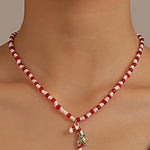 Emalirana Ogrlica S Perlama U Obliku Božićnog Štapića Podesiva Duljina Sa Zatvaračem Kukom I Očicom Iz Legure