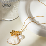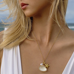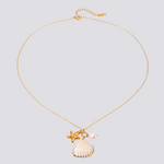 Privjesak s tri elementa kombinira zlatnu morskog zvijezdu, profinjenu školjku i nježni biser, stvarajući komad koji odiše svježinom, slobodom i prirodnom profinjenošću. Savršena za sve koji vole ljeto, plažu i osjećaj mira koji donosi ocean.