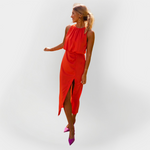 Haljina S Halter Dekolteom I Prednjim Šlicem Lagane Tkanine