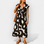 Otkrijte savršenu haljinu za svaku priliku! Ova prozračna haljina je komad koji ćete nositi iznova i iznova, od grada do odmora. S dubokim V izrezom koji ističe dekolte i modernim crno-bijelim dizajnom, spaja udobnost i stil u svakom izgledu. Lagana, prozračna tkanina pruža osjećaj slobode, dok kroj laskavo pristaje svakoj silueti. Može se nositi od jutra do noći uz odgovarajuće dodatke!