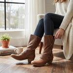Inspirirane western stilom, donose dozu karaktera i svestranosti svakom outfitu. Smeđa koža s efektom patine daje im autentičan izgled, dok srednja visina i bočni patentni zatvarač osiguravaju udobnost i lakoću pri nošenju.