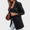 Elegantno strukiran sako s klasičnim reverima i dvorednim kopčanjem podiže svaki outfit — od traperica do poslovnog looka. Produženi, “longline” kroj vizualno izdužuje figuru, dok su diskretno pojačana ramena i džepovi s preklopom zaduženi za profinjenu strukturu i praktičnost. Ugodna, podatna tkanina lijepo pada i zadržava uredan izgled kroz cijeli dan.